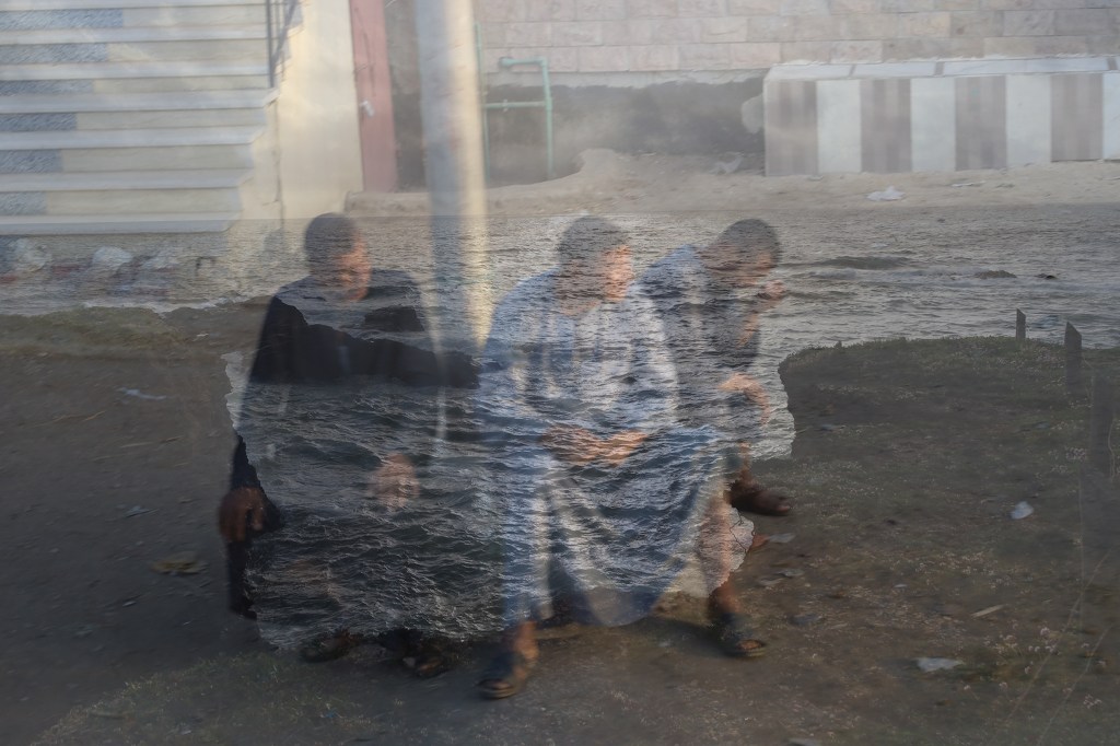 En suivant des impressions de déjà-vu, je fusionne ces deux images issues de ma photothèque personnelle pour en créer une troisième. L’image finale, résultant de la fusion, sera la première à être visible. Elle est dense, comme cryptée au premier regard et favorise l’interprétation subjective. En insistant, les contours des deux autres images vont rapidement apparaître. C’est une invitation à regarder, à prendre le temps de voir et à se créer nos propres fictions.