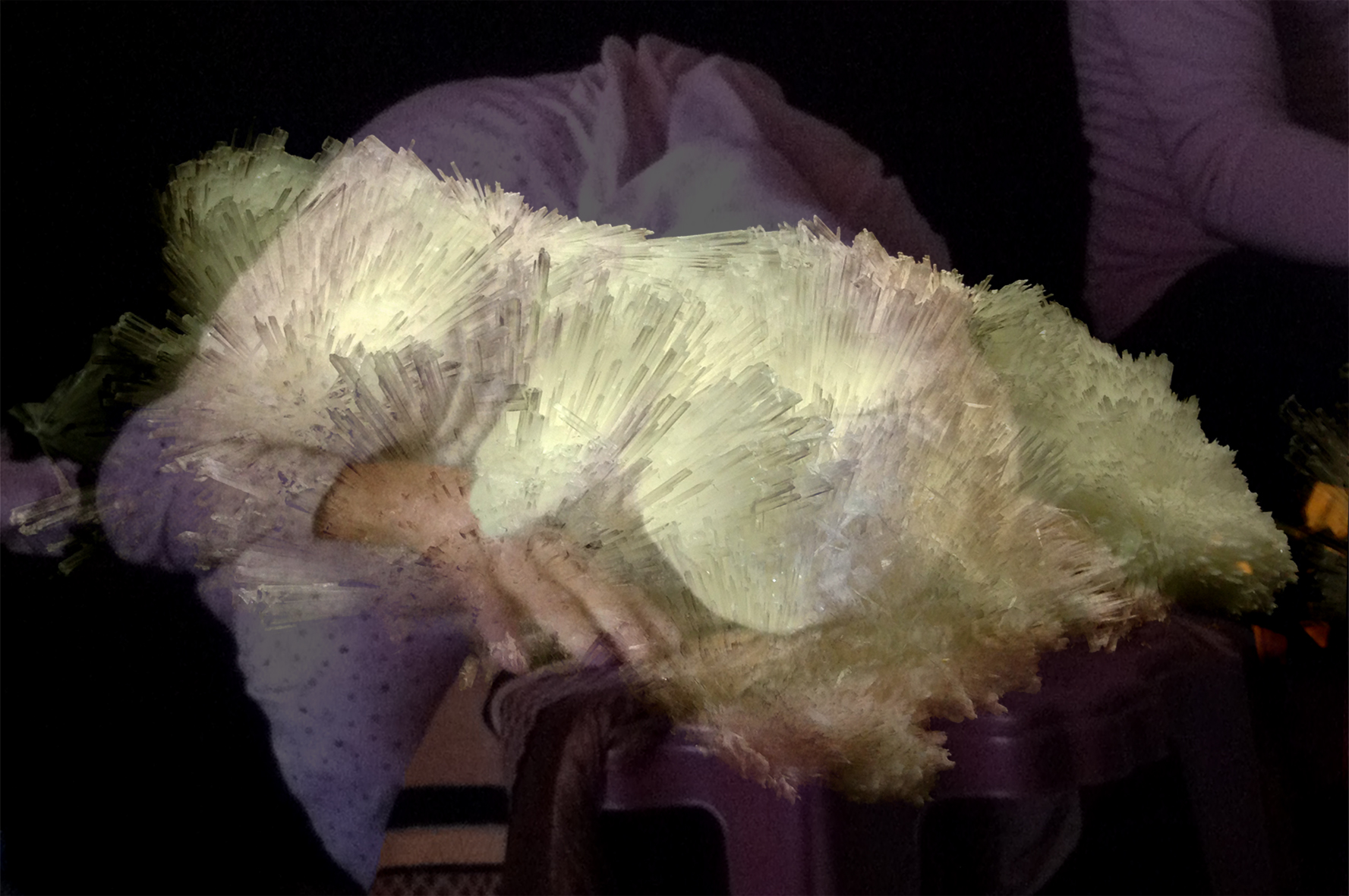 En suivant des impressions de déjà-vu, je fusionne ces deux images issues de ma photothèque personnelle pour en créer une troisième. L’image finale, résultant de la fusion, sera la première à être visible. Elle est dense, comme cryptée au premier regard et favorise l’interprétation subjective. En insistant, les contours des deux autres images vont rapidement apparaître. C’est une invitation à regarder, à prendre le temps de voir et à se créer nos propres fictions.
